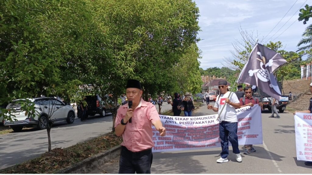 “Kami meminta Bupati bertanggung jawab atas berbagai dugaan pengkondisian proyek yang selama ini menjadi keresahan. Kami mendesak agar penarikan pajak Galian C kepada pemborong dihentikan karena SK Gubernur hanya berlaku bagi pemegang IUP. Kami juga meminta Dinas PUPR segera menghentikan penggunaan material ilegal pada proyek-proyek pemerintah,” ujarnya.