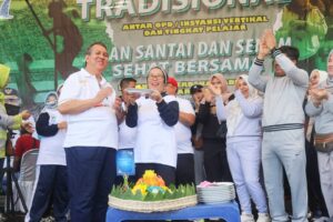 Muara Enim [Faktarealtv.com ] – Masih dalam semarak peringatan hari jadi ke-77 Kabupaten Muara Enim tahun 2023, Pemerintah Kabupaten Muara Enim melalui Dinas Kepemudaan & Olahraga menggelar Jalan Sehat dan Senam Bersama yang berlangsung di Lapangan Merdeka Muara Enim, Minggu (19/11). Bersamaan dengan acara tersebut, Pj. Bupati Muara Enim, Dr. H. Ahmad Rizali, M.A., menerima kejutan spesial ulang tahun dirinya yang ke-59 tahun dari Pj. Ketua TP PKK Kabupaten Muara Enim, Dr. dr. Hj. Rose Mafiana, Sp.An., beserta para kepala perangkat daerah yang hadir juga seluruh peserta jalan sehat dan senam bersama.
