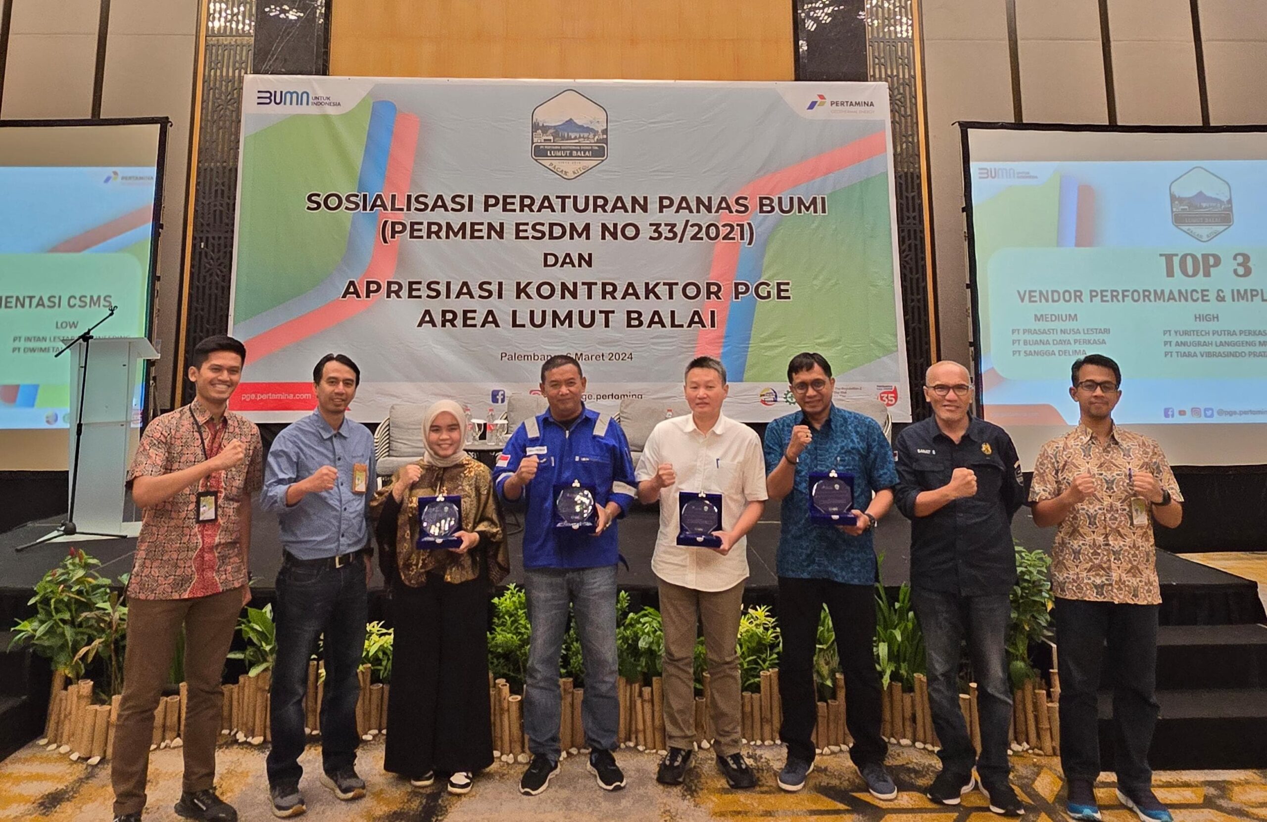 Palembang, 6 Maret 2024 – PT Pertamina Geothermal Energy Tbk (PGE) (IDX:PGEO) Area Lumut Balai menggelar acara “Sosialisasi Regulasi Panas Bumi dan Apresiasi Kontraktor PGE Area Lumut Balai” di Hotel Santika Premiere Palembang pada Rabu, 6 Maret 2024. Acara ini menandai penutupan agenda kegiatan Bulan K3 (Kesehatan Keselamatan Kerja) tahun 2024 dan bertujuan untuk menyebarkan informasi tentang regulasi panas bumi di Indonesia, dengan fokus pada aspek Kesehatan, Keselamatan Kerja dan Lindungan Lingkungan (K3LL) kepada seluruh kontraktor guna mencegah kecelakaan di tempat kerja. PGE sangat mendukung penuh kebijakan pemerintah dalam net zero emission, hal ini dibuktikan dengan sedang berlangsungnya pekerjaan EPCC Lumut Balai Unit ke-2 berkapasitas 55 MW. Dalam menjalankan pertumbuhan energi yang ramah lingkungan ini, PGE sangat mengutamakan aspek keselamatan, lingkungan dan sosial.