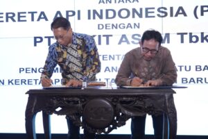 Muara Enim [ Faktarealtv.com ] – PT Kereta Api Indonesia (Persero) dan PT Bukit Asam Tbk (PTBA) menandatangani perjanjian jangka pendek untuk angkutan batu bara relasi Tanjung Enim Baru – Tarahan dan Tanjung Enim Baru – Kertapati dengan periode tahun 2023 – 2027, serta perjanjian kerangka kerja sama pengembangan angkutan batu bara relasi Tanjung Enim Baru – Keramasan.